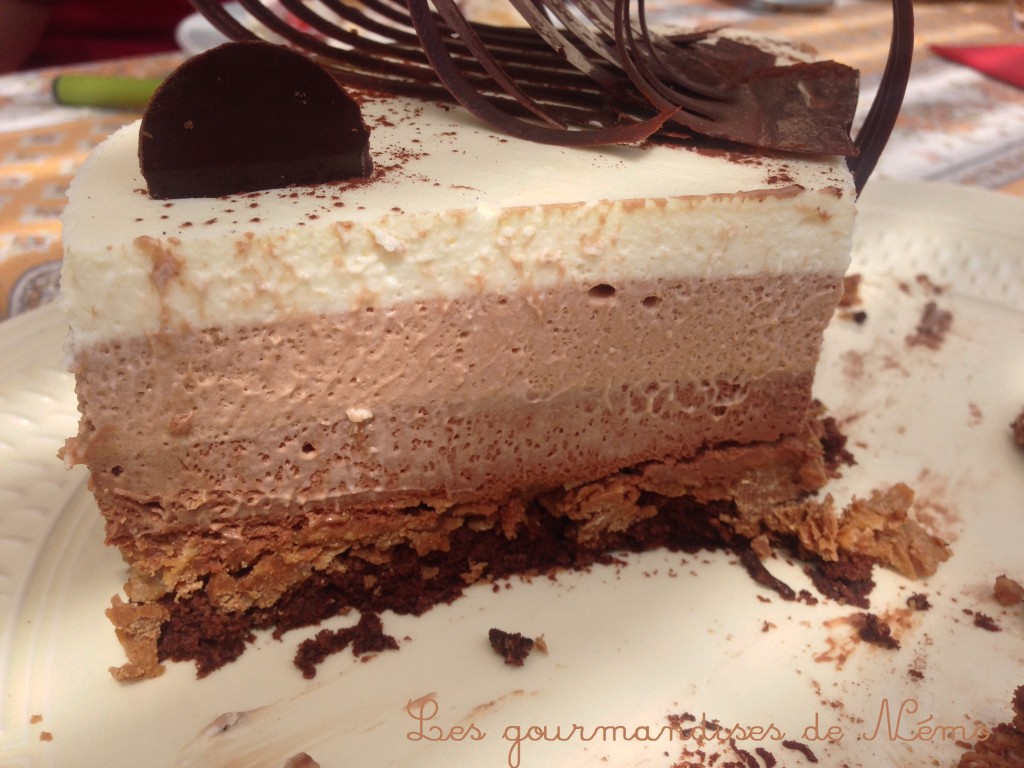 Merci beaucoup pour cette délicieuse recette, je viens de terminer l’entremet pour le servir au réveillon je l’ai déjà réalisé 2 fois et mes convives se sont régalés. J’ai utilisé un moule rectangle, mes différentes couches ne sont pas aussi régulières que les vôtres mais le résultat reste très joli tout de même alors merci encore.